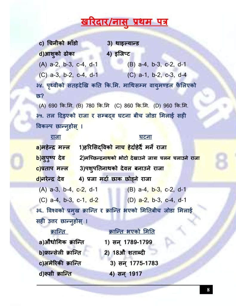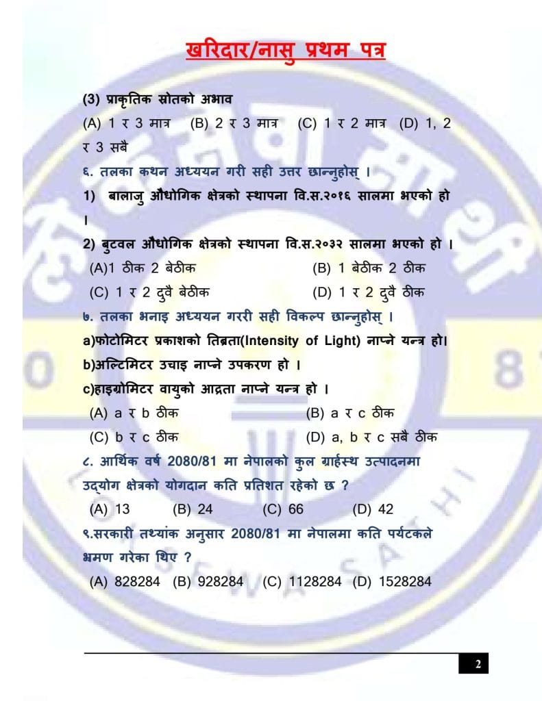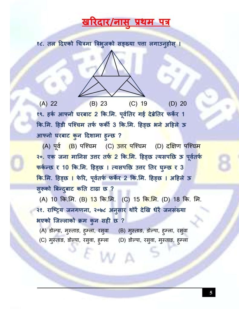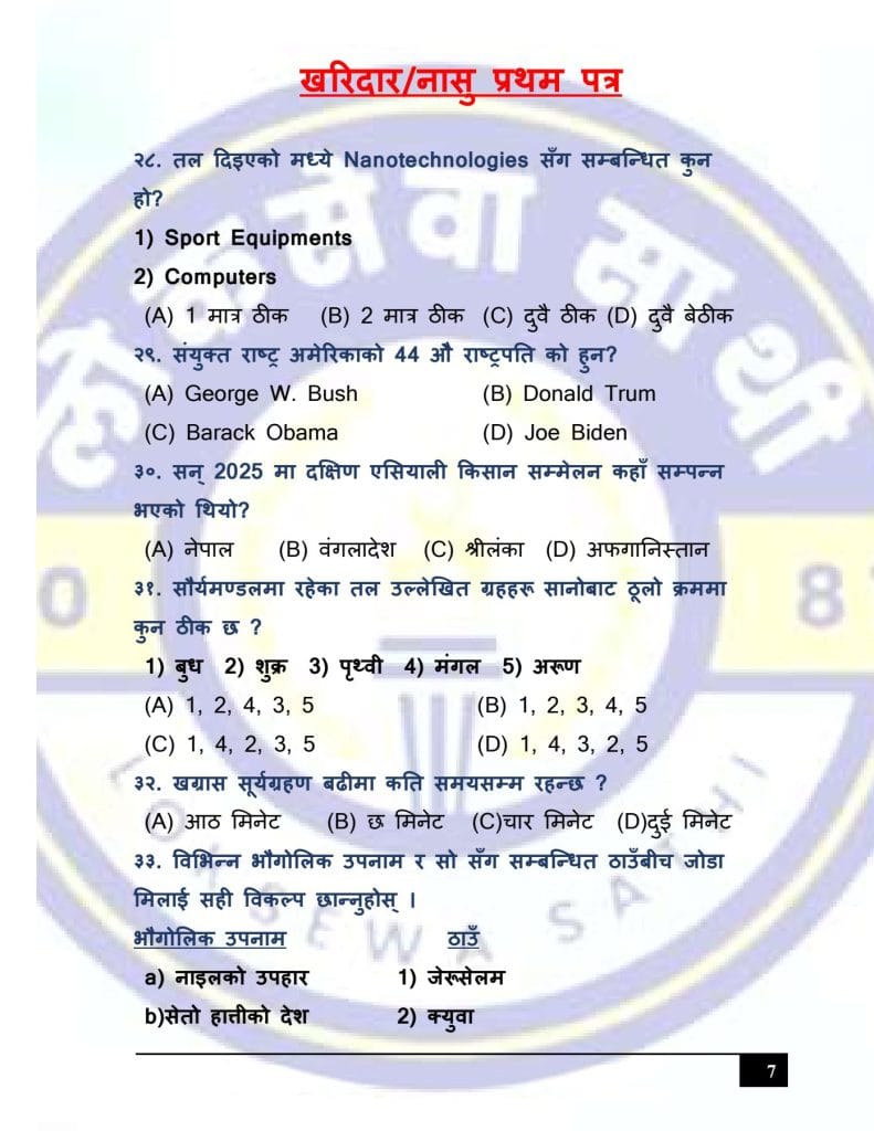 At Loksewa Sathi, we are committed to supporting your journey toward success in government service exams. Today, we are excited to present “Kharidar/Nasu First Paper Model Set 3 (GK & IQ)” for the First Paper of Kharidar/Nasu level exams, designed specifically to align with the latest syllabus and question format prescribed by the Public Service Commission(Loksewa Aayog), Nepal.