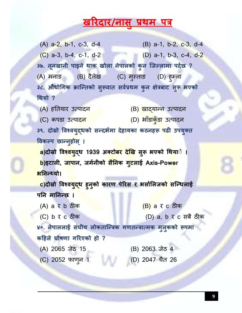 Namaste, We heartily welcome to you all in our special site of Loksewa Sathi which is specially designed for Loksewa PDF Notes and Online exams. In this post, we have the Kharidar/Nasu First Paper Model Set 3 (GK & IQ). This is a very useful and important questions collection for Kharidar/Nasu and al the related post.